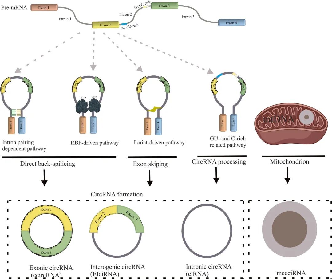 环状RNA(circRNA)作为一类具有全新调控功能的非编码RNA,已成为真核生物领域的研究热点。其通过非经典反向剪接机制实现5′端与3′端的共价连接,形成独特的闭合环状结构,区别于线性RNA。尽管circRNA的完整功能网络尚未完全阐明,但RNA测序技术与计算生物学的快速发展,已显著推动了其在植物和哺乳动物中的鉴定与功能注释进程。
