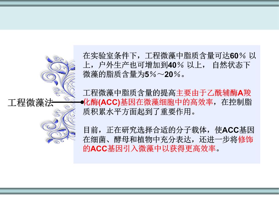 理论上说,如果种植2000 万至4000 万英亩的藻类,它们产生的生物原油总量可以达到目前美国原油进口数量,也就是说,可以真正起到替代进口的作用。微型曼哈顿计划的目标就是要将这一设想变成现实。根据计划,一部分科学家将寻找并培育产油率高的藻类植物;一部分科学家将致力于研究如何降低藻类植物的收获成本;另一部分人则研究如何从藻类植物中提取油脂。