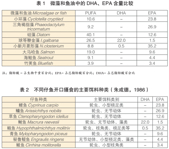 在研究和生产实践中发现,微藻饵料对鱼虾蟹幼体开口阶段的发育,特别是在对虾类育苗从无节幼体变态为蚤状幼体时具有重要作用。扁藻、金藻等可维持对虾、蟹类的发育和蜕皮变态;杂色蛤仔浮游幼虫阶段的面盘幼虫阶段优先摄食小球藻;鲍浮游幼体发育生长至稚鲍过程中,通过利用易消化的硅藻细胞内含物可进入快速生长阶段;在玛拉巴石斑鱼育苗中,投喂经过小球藻进行营养强化8小时以上的轮虫,仔鱼的成活率可提高85.3%~97.3%。