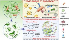 有害藻华(HABs)对水体生态安全和公众健康构成严重威胁,寻求高效可持续的控藻技术成为研究热点。本研究聚焦双功能真菌茄病镰刀菌D7,探讨其在藻类控制中的多重机制、有机物动态及实际应用效果。结果表明,D7菌株对铜绿微囊藻的杀藻效率达80.98%,总氮去除率为88.81%,表现出同步控藻与脱氮能力。数学模型显示其优先进行反硝化,通过营造氮限制环境抑制藻胆蛋白合成,实现源头控藻。代谢响应分析证实,D7代谢活动破坏藻细胞抗氧化与光合系统,导致细胞膜破裂及胞内有机物释放,完成末端治理。平行因子分析进一步表明,D7能利用藻细胞裂解释放的类蛋白质等促生长物质进行生长,可能降低二次污染风险。原水实验验证其应用潜力:相较对照组,D7使藻属减少6个,同步实现76.96%的杀藻效率和78.86%的反硝化效率。网络分析指出,绿藻门作为k-策略藻类可能通过种间协同形成潜在生态风险。本研究提出了一种基于双功能真菌D7的可持续控藻策略,为藻华生物防治提供了新路径。…