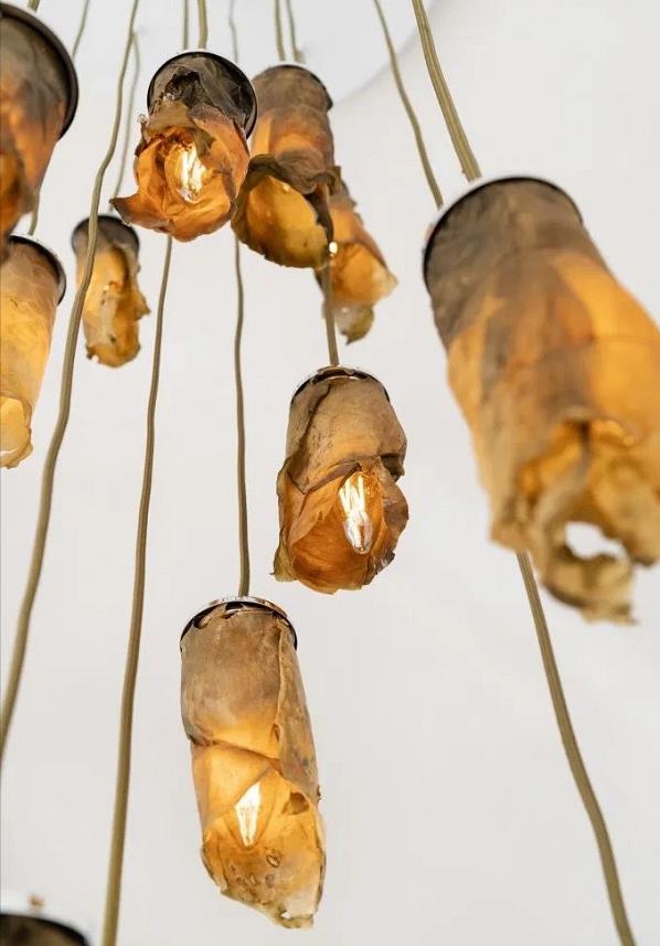 这些吊灯由纽约设计师妮娜·爱德华兹·安克(Nina Edwards Anker)用干燥的海藻片制作而成。