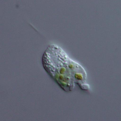 如图21所示,名为纤细裸藻,又名小眼虫(绿眼虫),细胞内含有副淀粉(β-1,3葡聚糖),是裸藻的储能物质,同时含有不饱和脂肪酸,维生素E等物质,已经被开发为保健品,市场上所谓的裸藻,就是指的这个种,最近几年市场尤其火爆。因为副淀粉具有增强人体免疫力的功能,撇开那些过度宣传,也不失为一种值得开发的经济微藻。
